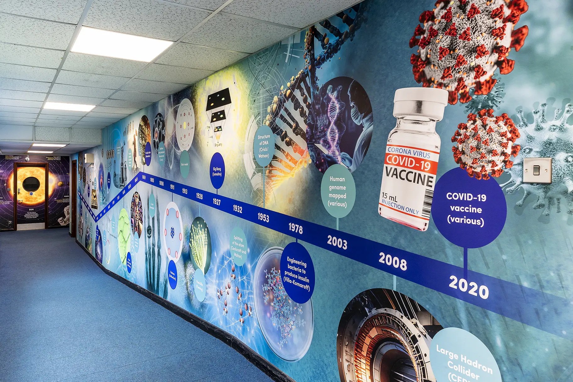 Timelines are one of our most popular Wall Art styles. And they’re a great inclusion in our Science Laboratory Design Ideas because they serve multiple purposes;