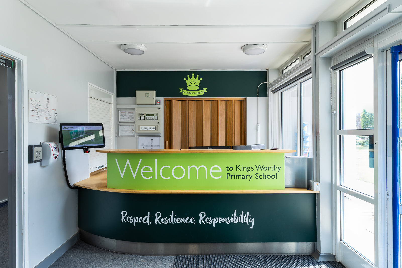 Go beyond the walls to include the reception desk or office which is likely a central hub of your school. With a few simple visual enhancements, this space will impress visitors and have a real impact.