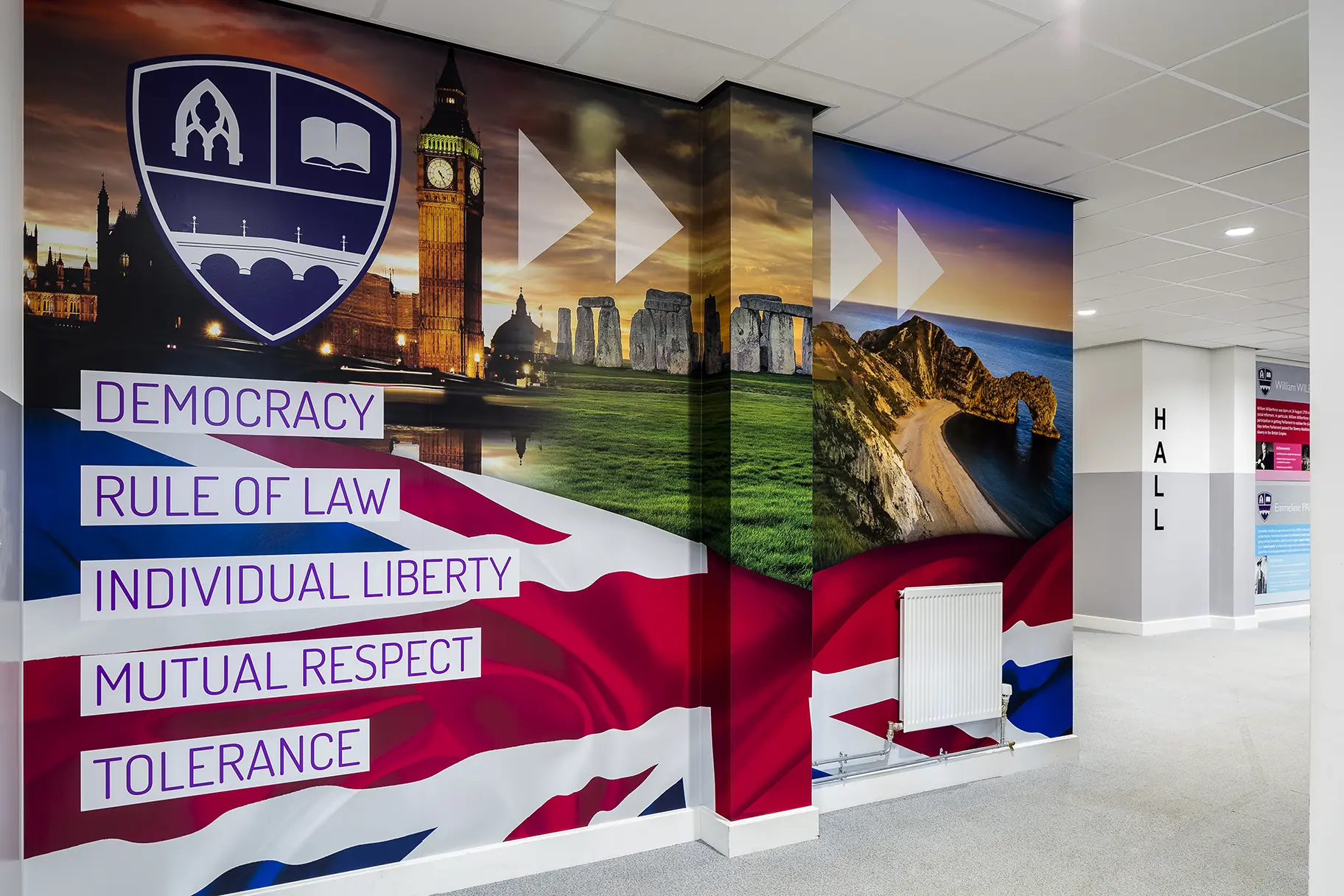 You can use visual displays to celebrate the many religions and cultures that make up your community. For example; Torquay Academy installed a Wall Art design that features religious festivals from around the world. This showcases the diverse range of beliefs and cultures and helps pupils understand what makes each of them unique and positive.