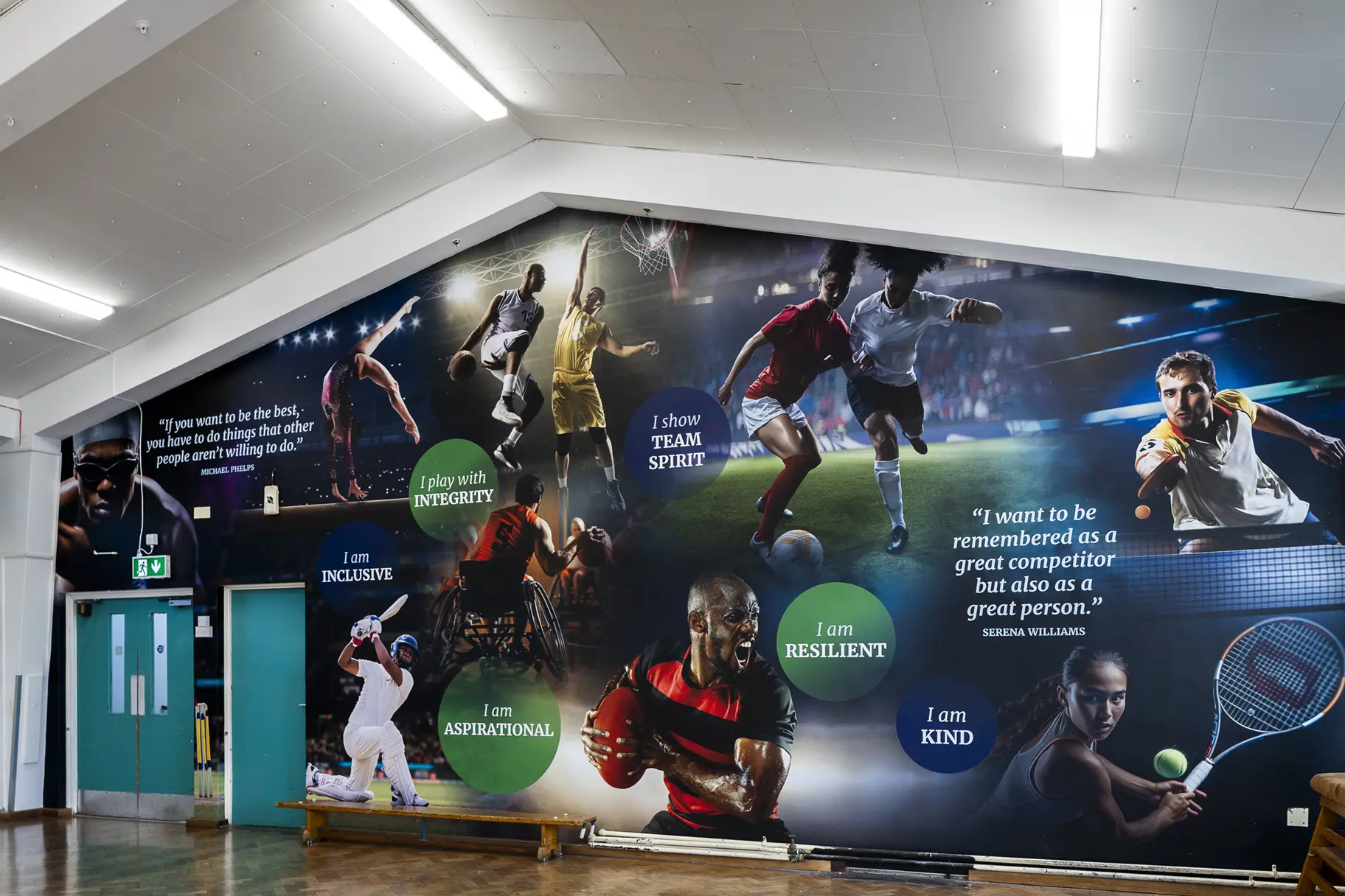 Team spirit, resilience and aspiration. These are all pillars of sport and are often reflected in the people who take part. For this reason, many schools feature sports heroes on their walls to represent the spirit of teamwork and cooperation.