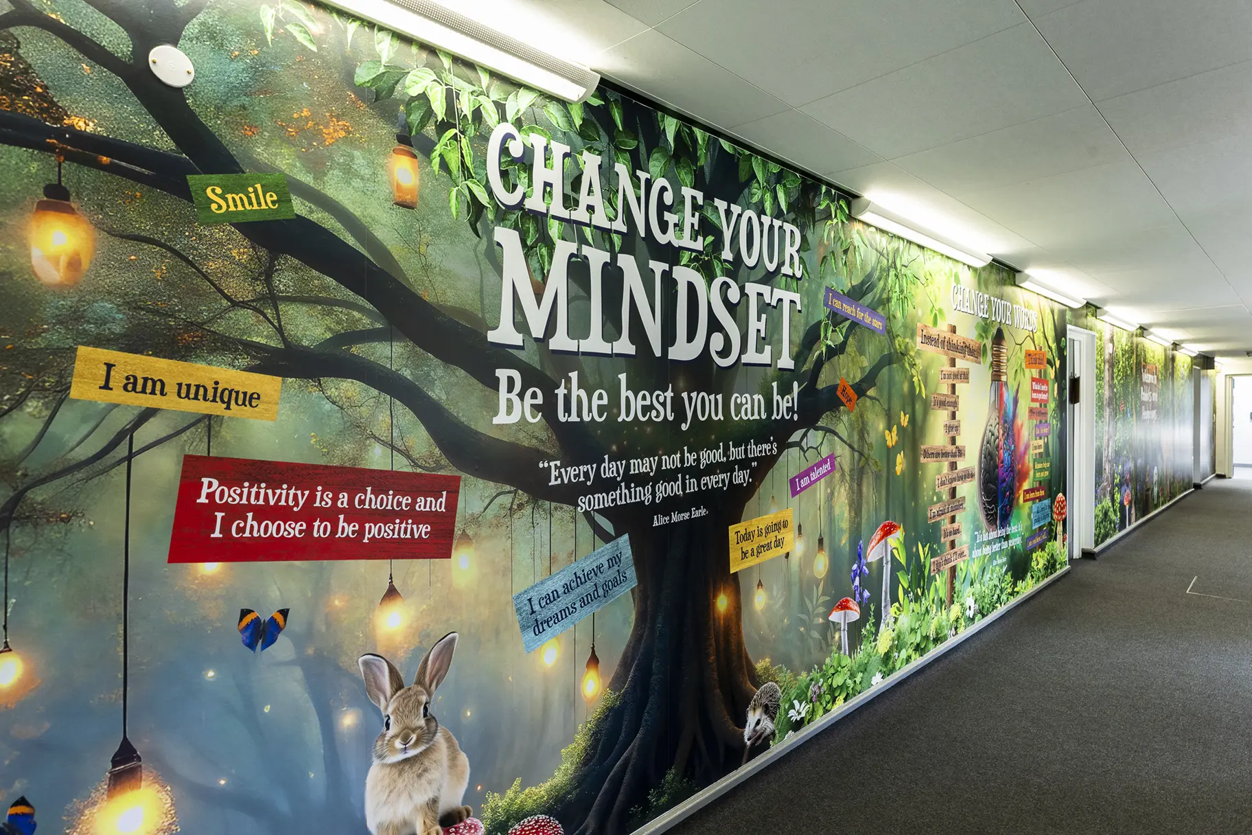 Woolwich Polytechnic School invested in a Diversity based Wall Art design. They were keen to promote diversity in all its forms and encourage pupils to practice kindness. The design includes an inspiring message about the power of diversity. And tips on how to spread kindness; through volunteering, being grateful and sharing compliments.