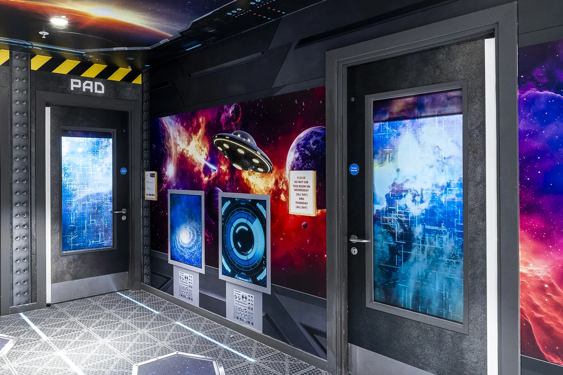 Using the walls, floors and ceilings of the SEND area, they wanted to create an immersive design. The design should give the feel of a launch pad, visually spectacular and aspirational for pupils.