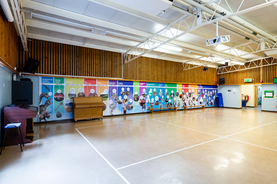 A history timeline gives a visual overview of key events throughout the years. And, the school hall at The Grove Primary School was the perfect space for this extra large format Wall Art.