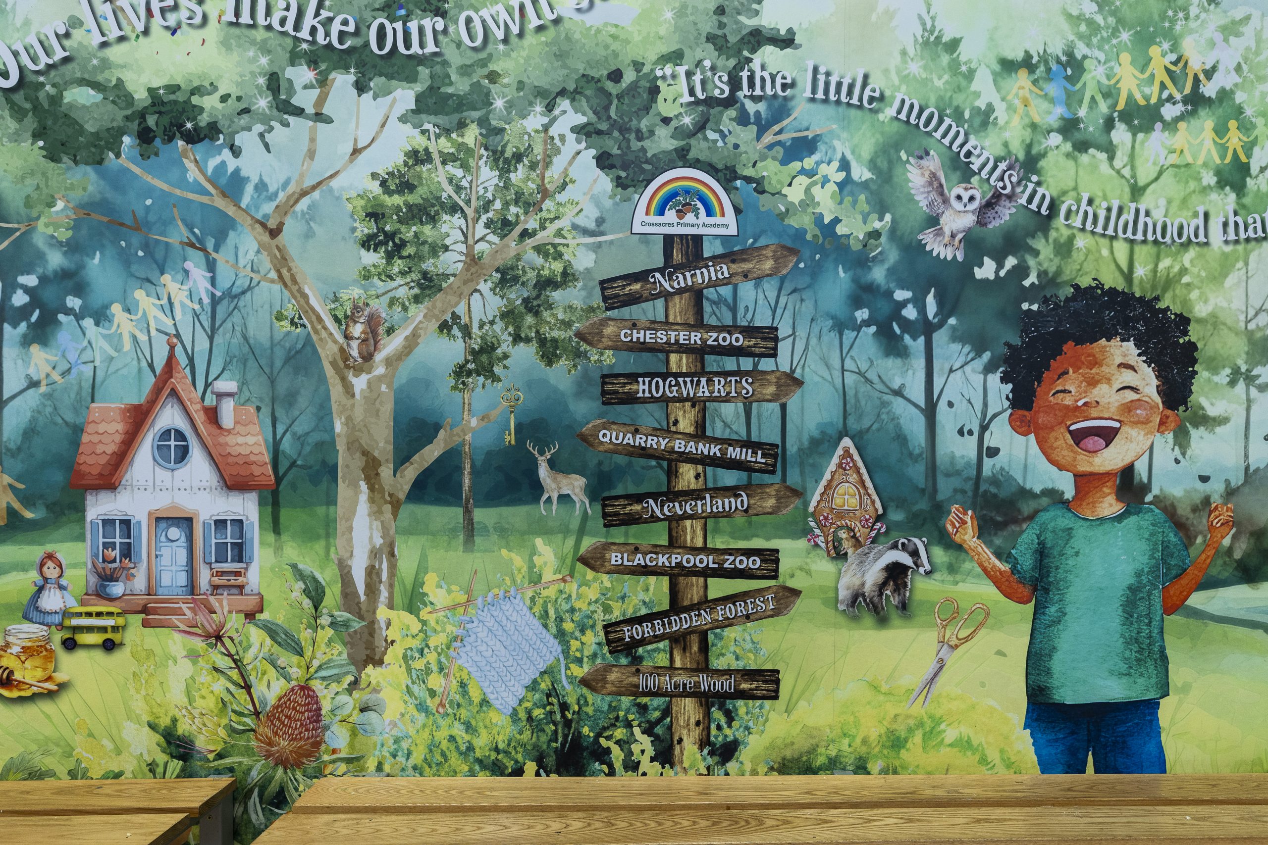 We loved tailoring the design to images and messages that mean a lot to the whole school community. This helps pupils connect with the Wall Art, feel inspired by the magic of stories and appreciate the importance of family – all within one powerful design.
